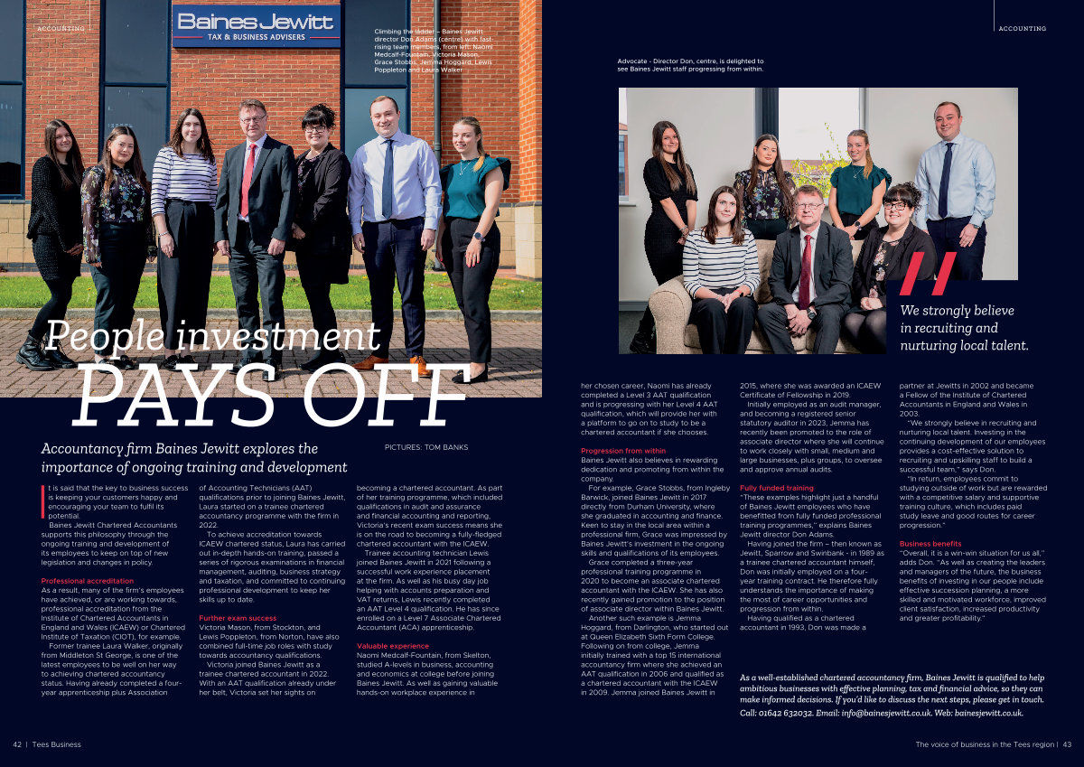 It is said that the key to business success is keeping your customers happy and encouraging your team to fulfil its potential. Baines Jewitt Chartered Accountants supports this philosophy through the ongoing training and development of its employees to keep on top of new legislation and changes in policy.