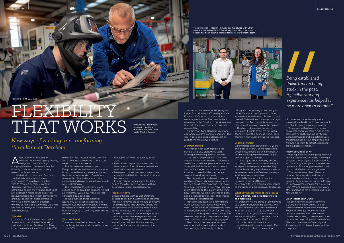 What key people make of the process Katy O’ Farrell, vice president of sales and marketing“ At Darchem we are proud of our heritage as a global manufacturing business. We are aware of the constraints within our industry – you can’ t weld a complex fabrication from your kitchen table – and we are working hard to create a culture that works for people in 2025.