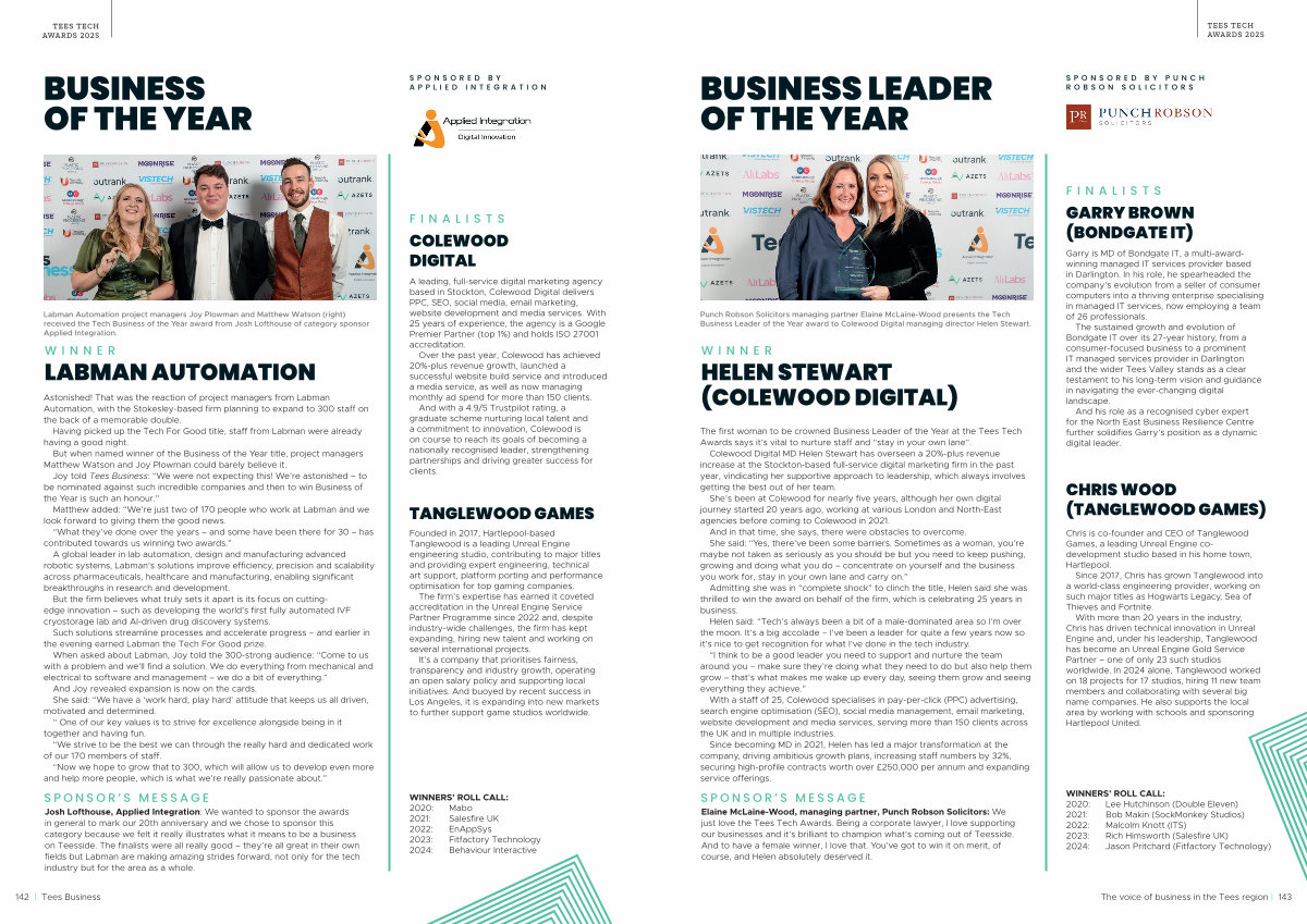 Josh Lofthouse, Applied Integration: We wanted to sponsor the awards in general to mark our 20th anniversary and we chose to sponsor this category because we felt it really illustrates what it means to be a business on Teesside. The finalists were all really good – they’ re all great in their own fields but Labman are making amazing strides forward, not only for the tech industry but for the area as a whole.