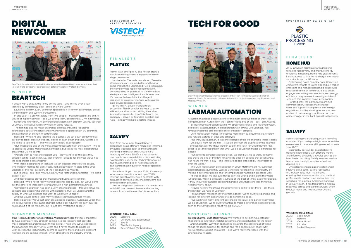 A system that helps people at one of the most sensitive times of their lives bagged Labman Automation the Tech for Good title at the Tees Tech Awards.
