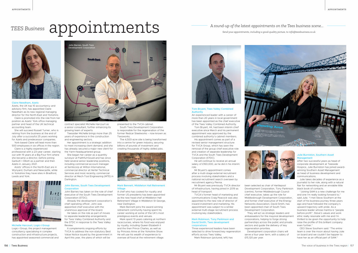 Send your appointments, including a good-quality picture, to info @ teesbusiness. co. uk
