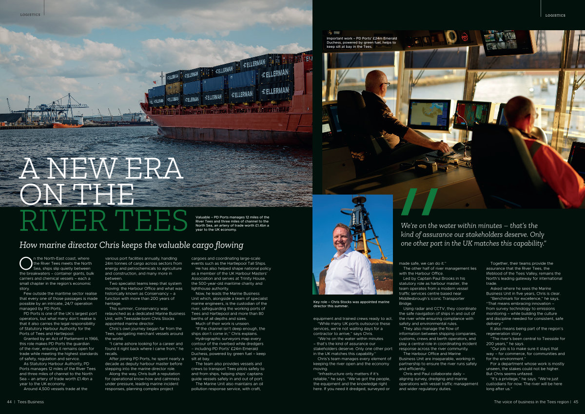 Together, their teams provide the assurance that the River Tees, the lifeblood of the Tees Valley, remains the North’ s leading gateway for international trade.