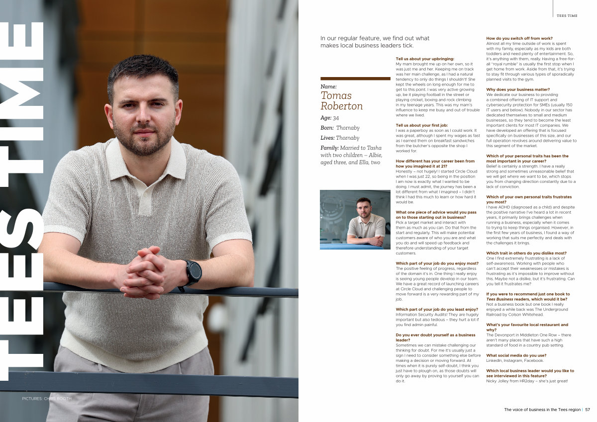 If you were to recommend just one book to Tees Business readers, which would it be? Not a business book but one book I really enjoyed a while back was The Underground Railroad by Colson Whitehead.