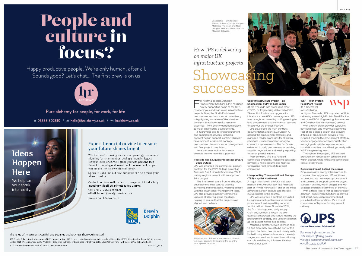 For nearly a decade, Johnson Procurement Solutions( JPS) has been quietly supporting some of the UK’ s most complex and high-value infrastructure projects. Now, the North-East-based procurement and commercial consultancy is highlighting just a few of the standout contracts that showcase its hands-on expertise- from energy transition projects to major engineering developments.