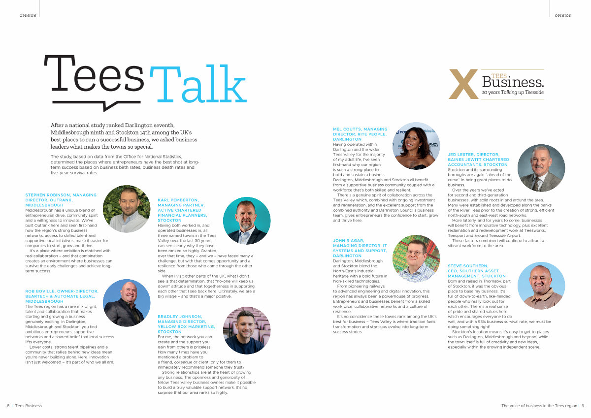 After a national study ranked Darlington seventh, Middlesbrough ninth and Stockton 14th among the UK’ s best places to run a successful business, we asked business leaders what makes the towns so special.