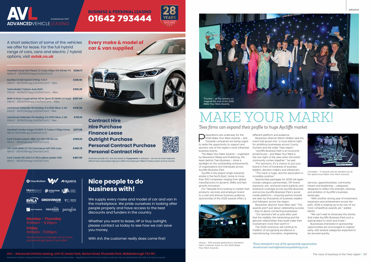 The Make Your Mark Awards – organised by Resolution Media and Publishing, the team behind Tees Business – shine a spotlight on the outstanding achievements of organisations and individuals across Aycliffe Business Park.