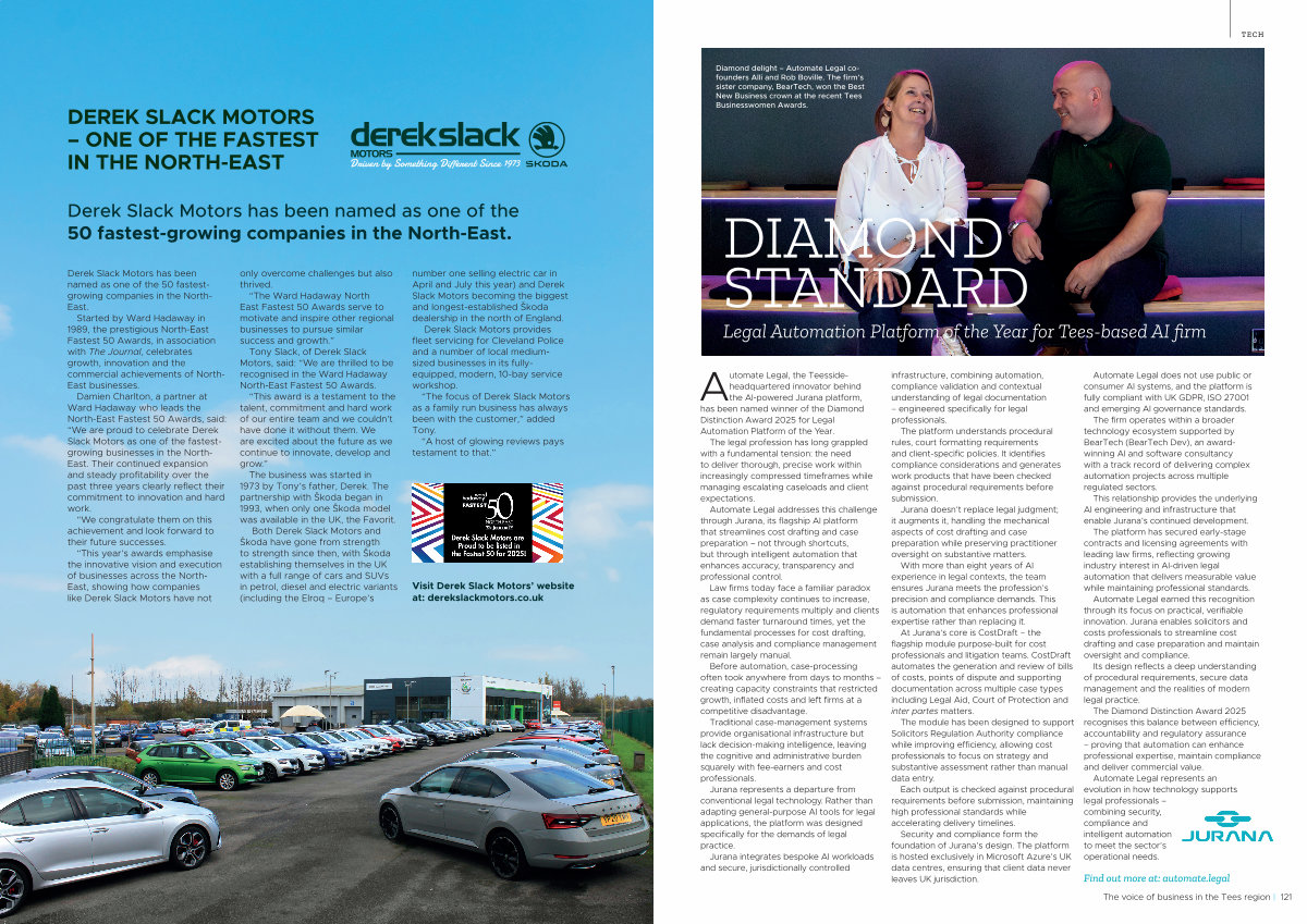 “ This year’ s awards emphasise the innovative vision and execution of businesses across the North- East, showing how companies like Derek Slack Motors have not only overcome challenges but also thrived.