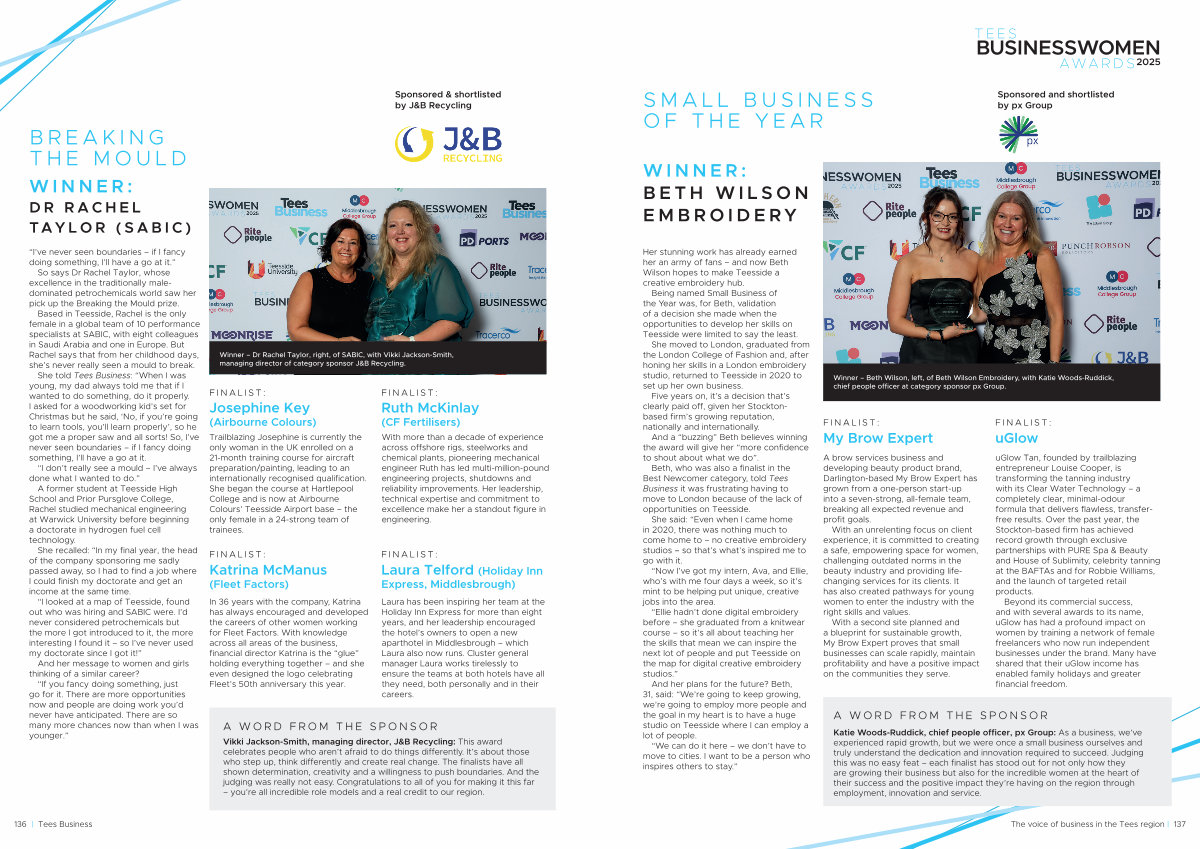 So says Dr Rachel Taylor, whose excellence in the traditionally maledominated petrochemicals world saw her pick up the Breaking the Mould prize.