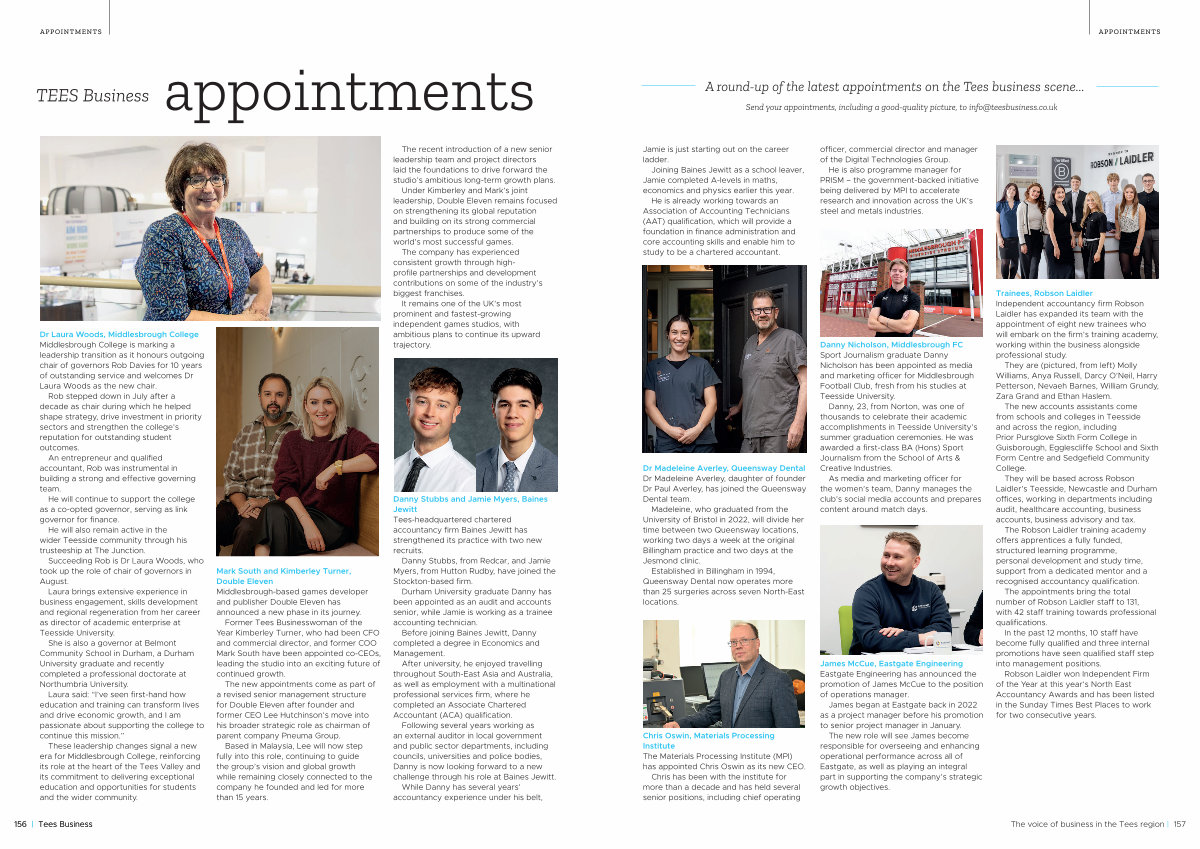 Former Tees Businesswoman of the Year Kimberley Turner, who had been CFO and commercial director, and former COO Mark South have been appointed co-CEOs, leading the studio into an exciting future of continued growth.