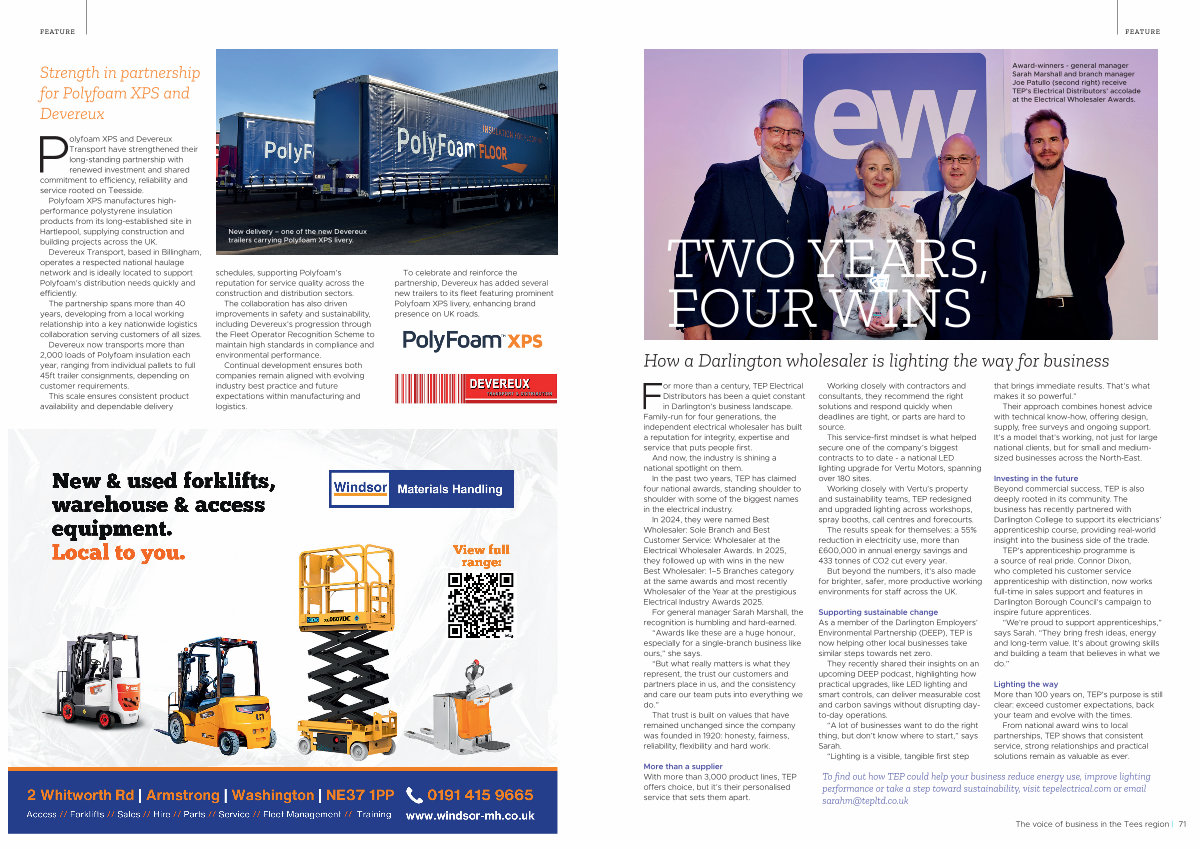Investing in the future Beyond commercial success, TEP is also deeply rooted in its community. The business has recently partnered with Darlington College to support its electricians’ apprenticeship course, providing real-world insight into the business side of the trade.