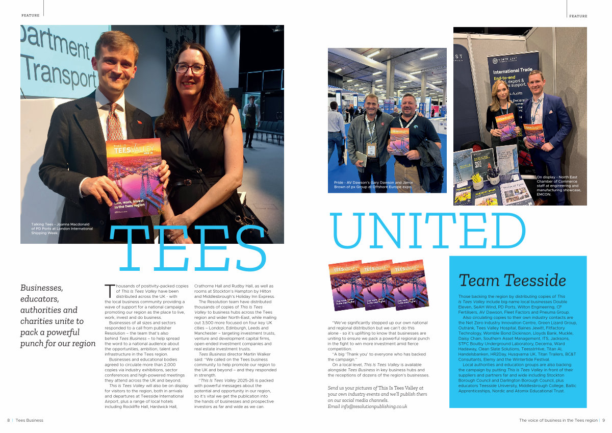 Businesses of all sizes and sectors responded to a call from publisher Resolution – the team that’ s also behind Tees Business – to help spread the word to a national audience about the opportunities, ambition, talent and infrastructure in the Tees region.