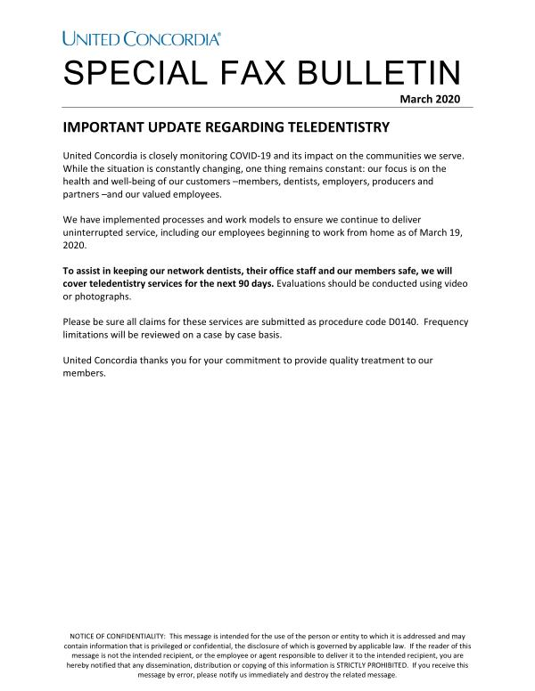 IMPORTANT UPDATE REGARDING TELEDENTISTRY