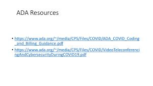 • https :// www . ada . org /~/ media / CPS / Files / COVID / ADA _ COVID _ Coding _ and _ Billing _ Guidance . pdf