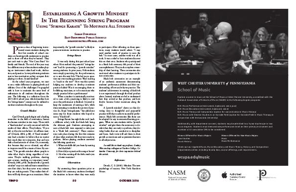 Establishing A Growth Mindset In The Beginning String Program Using“ Strings Karate” To Motivate All Students