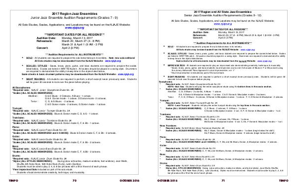 are listed in WRITTEN pitch. All scales should be played in a swing style. Drummers are required to demonstrate the ability