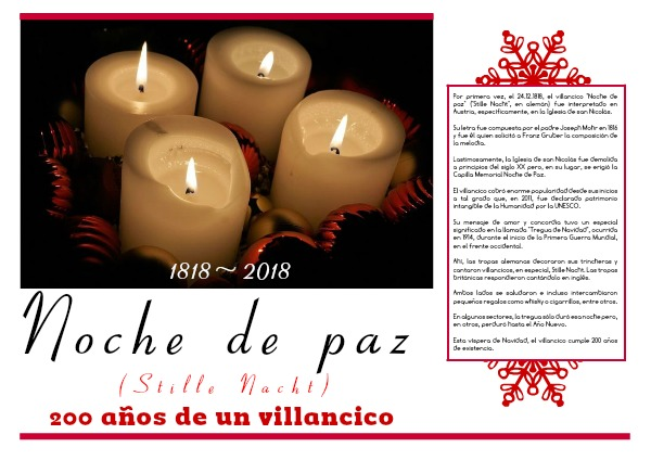 Por primera vez, el 24.12.1818, el villancico "Noche de paz" ("Stille Nacht", en alemán) fue interpretado en Austria, específicamente, en la Iglesia de san Nicolás.