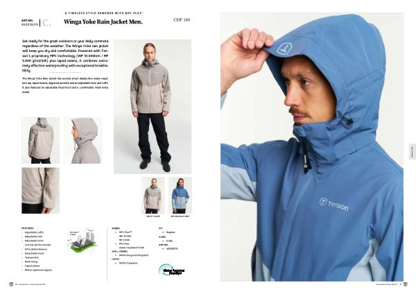 Get ready for the great outdoors or your daily commute regardless of the weather: The Winga Yoke rain jacket will keep you dry and comfortable. Powered with Tenson’ s proprietary MPC technology( WP 10.000mm / MP 5.000 g / m2 / 24h) plus taped seams, it combines extremely effective waterproofing with exceptional breathability.