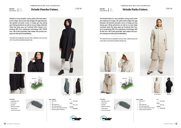 The Drizzle has an adjustable hood and cuffs, a reflective print and comes with a very practical packable polyester bag.