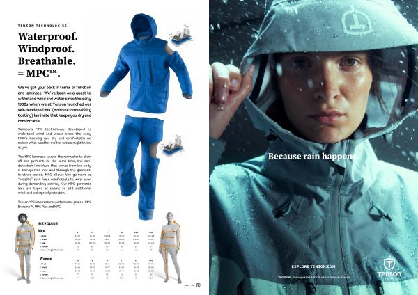We’ ve got your back in terms of function and laminate! We’ ve been on a quest to withstand wind and water since the early 1980s when we at Tenson launched our self-developed MPC( Moisture Permeability Coating) laminate that keeps you dry and comfortable.