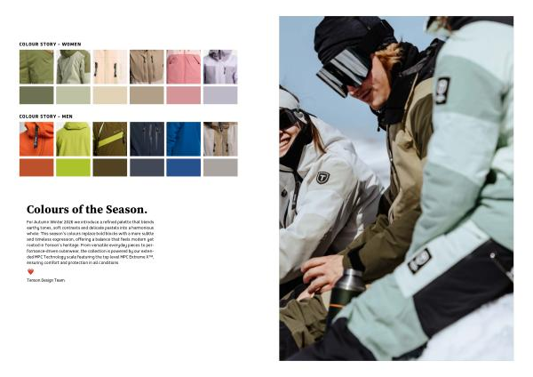 For Autumn Winter 2026 we introduce a refined palette that blends earthy tones, soft contrasts and delicate pastels into a harmonious whole. This season’ s colours replace bold blocks with a more subtle and timeless expression, offering a balance that feels modern yet rooted in Tenson’ s heritage. From versatile everyday pieces to performance-driven outerwear, the collection is powered by our extended MPC Technology scale featuring the top level MPC Extreme X™, ensuring comfort and protection in all conditions.