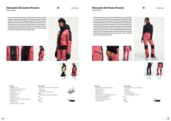 The Monamie Pants Women combine ski functionality with a sleek, feminine silhouette. Crafted from softshell fabric with four-way stretch, they deliver flexibility, comfort and protection in all conditions. With 10,000 mm waterproofing, 5,000 g / m2 / 24h breathability and a PFC-free water-repellent finish, they keep you dry while allowing ease of movement. Designed with a slim fit and articulated knees, these pants offer a flattering yet functional shape. Reinforced panels and padded knees add durability, while snow gaiters, silicone grippers and secure double closure ensure a reliable fit over ski boots. Adjustable waist with hidden elastic enhances comfort, and zippered pockets provide practical storage. A stylish and dependable ski pant that balances performance and modern design – the perfect match to the Monamie Jacket Women.