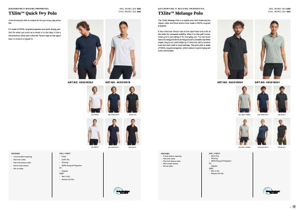 The TXlite Melange Polo is a stylish polo shirt featuring the classic collar and three button look made in 100 % recycled polyester.