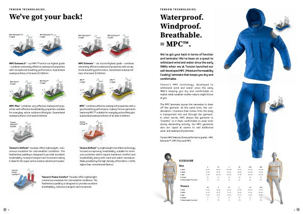 MPC™ combines effective waterproof properties with a good breathing performance, making Tenson garments featuring MPC™ suitable for everyday active lifestyles. Guaranteed waterproofness of at least 5.000mm.