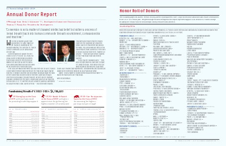 in the 2013–2014 fiscal year. The generous gifts listed throughout this report represent support to all areas of St. Francis College