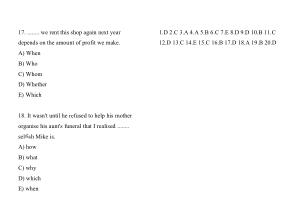 18 . It wasn ' t until he refused to help his mother organise his aunt ' s funeral that I realised ........ selfish Mike is . A ) how B ) what C ) why D ) which E ) when