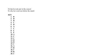 KEY 1 . B 2 . D 3 . D 4 . C 5 . D 6 . A 7 . C 8 . C 9 . E 10 . A 11 . C 12 . C 13 . D 14 . D 15 . C 16 . A 17 . B 18 . C 19 . B 20 . C