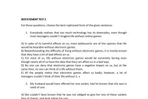 RESTATEMENT TEST 2 For these questions , choose the best rephrased form of the given sentence .