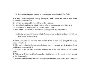 A ) If only I hadn ’ t forgotten to buy some gifts , then I would be able to offer some souvernirs to close friends . B ) I am totally accountable for not buying the presents . C ) I wish I had bought some gifts in Paris to offer to some people after the trip . x D ) I couldn ’ t avoid buying so many gifts but I wish I hadn ’ t . E ) It would be a discourteous conduct not to bring some offers from Paris .