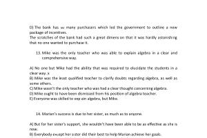 A ) No one but Mike had the ability that was required to elucidate the students in a clear way . x B ) Mike was the least qualified teacher to clarify doubts regarding algebra , as well as some others . C ) Mike wasn ’ t the only teacher who was had a clear thought concerning algebra . D ) Mike ought to have been dismissed from his position of algebra teacher . E ) Everyone was skilled to explain algebra , but Mike .