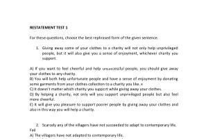 RESTATEMENT TEST 1 For these questions , choose the best rephrased form of the given sentence .