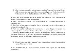 5 . After her post-graduation and some years working for a small company , Maria ’ s skills were acknowledged , and she was recruited by one of the best companies in the country . Then , she bought a car with all the bells and whistles .