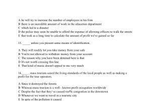 A Since it destroyed the forests B Whereas mass tourism is a well - known profit occupation worldwide C Despite the fact that they ’ ve caused traffic congestion in the downtown D Whenever we want to travel in a touristic city E In spite of the pollution it caused