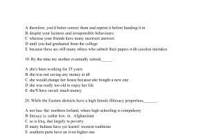 A nor has : the : northern Ireland , where high schooling is compulsory B literacy is . rather low . in . Afghanistan C so is Iraq , due largely to poverty D many Indians have yet learnt1 western traditions E southern parts have an even higher one