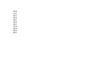 10 ) B 11 ) E 12 ) C 13 ) A 14 ) E 15 ) B 16 ) C 17 ) B 18 ) A 19 ) D 20 ) E