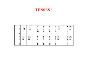 3 TENSES 1 1 . C 2 . B 3 . A 4 . D 5 . C 6 . E 7 . D 8 . C 9 . A 10 . A 1 1 . E 12 . B 13 . D 1 4 . E 1 5 . E 1 6 . C 1 7 . B 18 . D 1 9 . B 20 . A