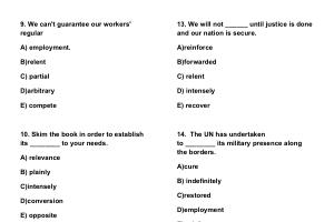 A ) employment . B ) relent C ) partial D ) arbitrary E ) compete