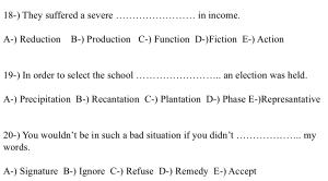 19- ) In order to select the school …………………….. an election was held . A- ) Precipitation B- ) Recantation C- ) Plantation D- ) Phase E- ) Represantative