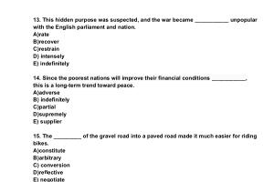 14 . Since the poorest nations will improve their financial conditions ___________, this is a long-term trend toward peace . A ) adverse B ) indefinitely C ) partial D ) supremely E ) supplier