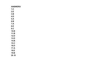 ANSWERS 1 . C 2 . E 3 . B 4 . D 5 . A 6 . B 7 . A 8 . E 9 . C 10 . B 11 . B 12 . D 13 . D 14 . B 15 . C 16 . D 17 . A 18 . E 19 . B 20 . B