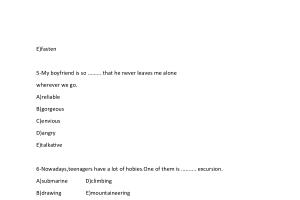 5-My boyfriend is so ......... that he never leaves me alone wherever we go . A ) reliable B ) gorgeous C ) envious D ) angry E ) talkative