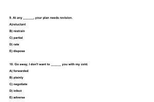 9 . At any ______, your plan needs revision . A ) reluctant B ) restrain C ) partial D ) rate E ) dispose