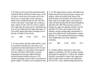 8 . ( I ) Tides are the result of the gravitational pull of both the Moon and the Sun which cause a swell of water to sweep across the oceans twice a day . ( II ) Even so , in some parts of the world one is hardly aware of high tide and low tide . ( III ) This swell is only about 1 metre high , but it contains a huge volume of water . ( IV ) As it tries to squeeze into a tight inlet , the result can be a substantial rise in sea level at high tide and a huge tidal range . ( V ) The world ' s largest tidal range is thought to be in the Bay of Fundy in Nova Scotia .