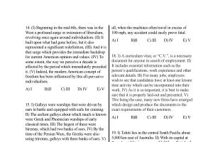18 . I ) A curriculum vitae , or “ C . V .”, is a necessary document for anyone in search of employment . II ) It includes essential information such as the person ’ s qualifications , work experience and other relevant details . Ill ) For many jobs , employers wish to see that candidates have at least one leisure time activity which can be incorporated into their work . IV ) As it is so important , it is best to make sure that it is properly laid-out and presented . V ) This being the case , many new firms have emerged which design and produce the documents to the exact requirements of their customers .