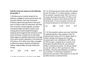 1 . ( I ) Edison was an inventor known for his influence , intelligence and his perseverance . ( II ) During his lifetime , more than a thousand American patents were granted on work of his own or of teams under his supervision . ( Ill ) Three of his inventions , the phonograph , a practical incandescent light and electric system , and a moving picture camera helped found giant industries that changed the life and leisure of the world . ( IV ) Home schooled and an avid reader , Edison began his scientific experiments at the age of ten when he built a laboratory in the basement of his house . ( V ) In other areas , Edison managed to affect over twenty industries including the military , medical fields , the stock market and mining .