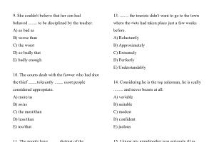 9 . She couldn ' t believe that her son had behaved ........ to be disciplined by the teacher . A ) as bad as B ) worse than C ) the worst D ) so badly that E ) badly enough