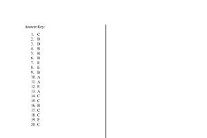 1 . C 2 . B 3 . D 4 . B 5 . B 6 . B 7 . E 8 . E 9 . B 10 . A 11 . A 12 . E 13 . A 14 . C 15 . C 16 . B 17 . C 18 . C 19 . E 20 . C